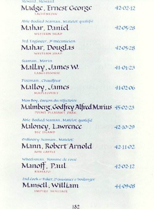 Page 182 of the Merchant Navy Book of Remembrance.