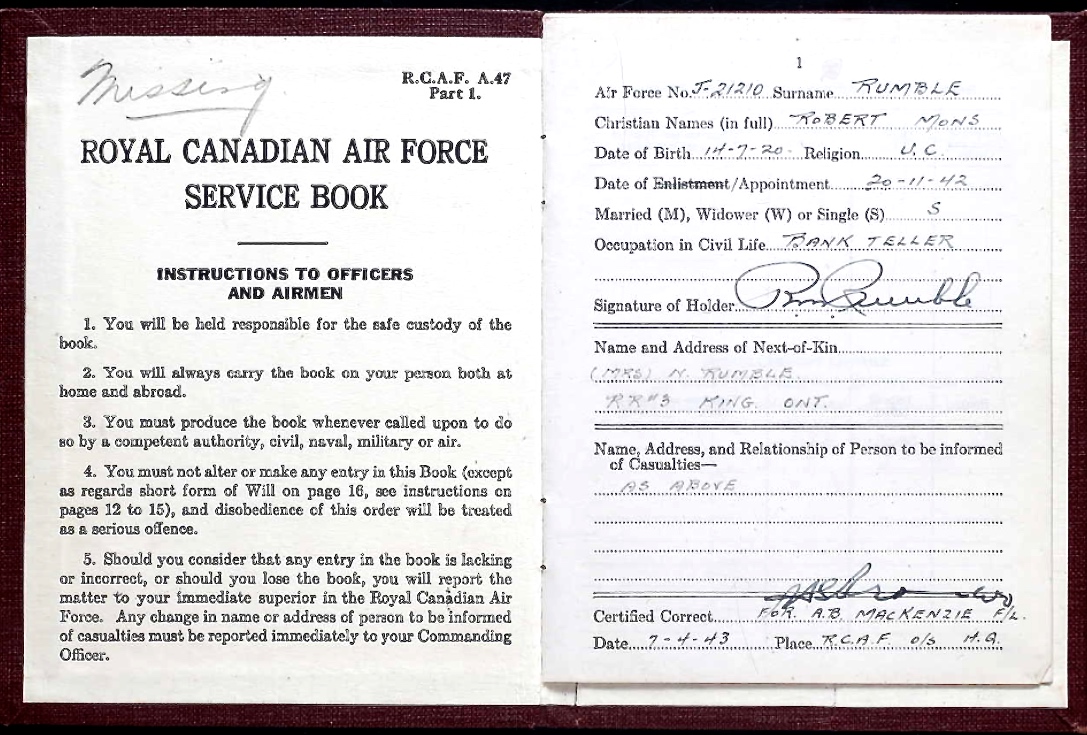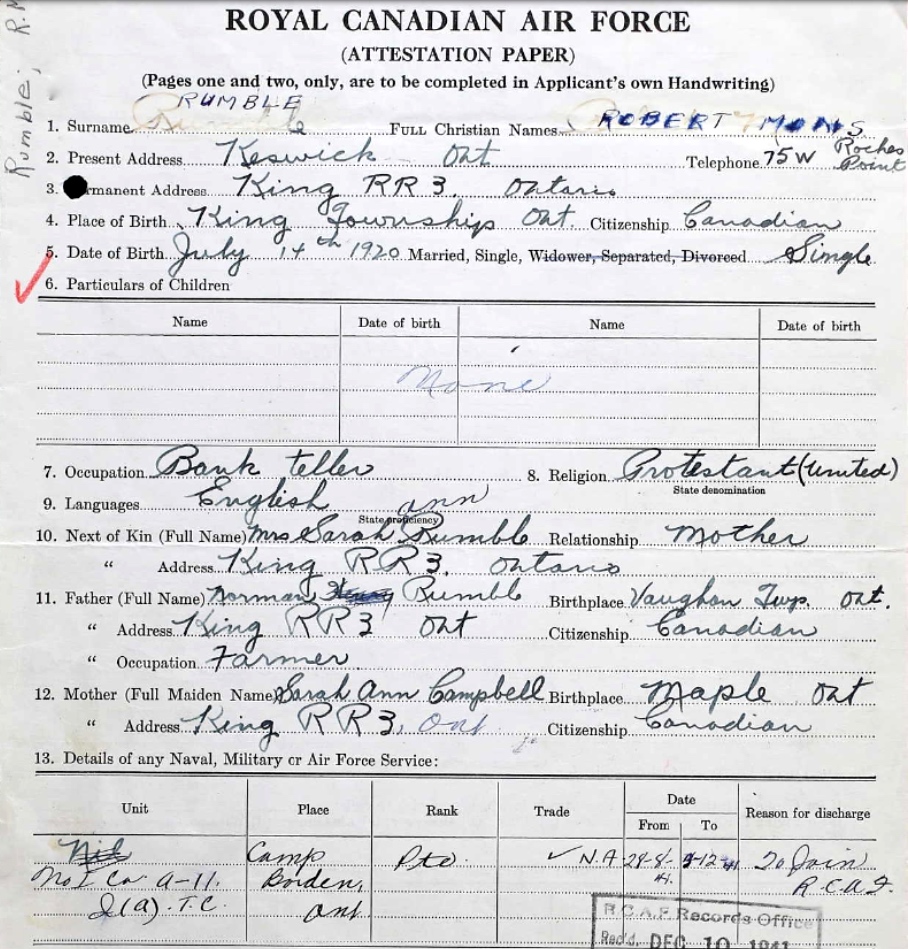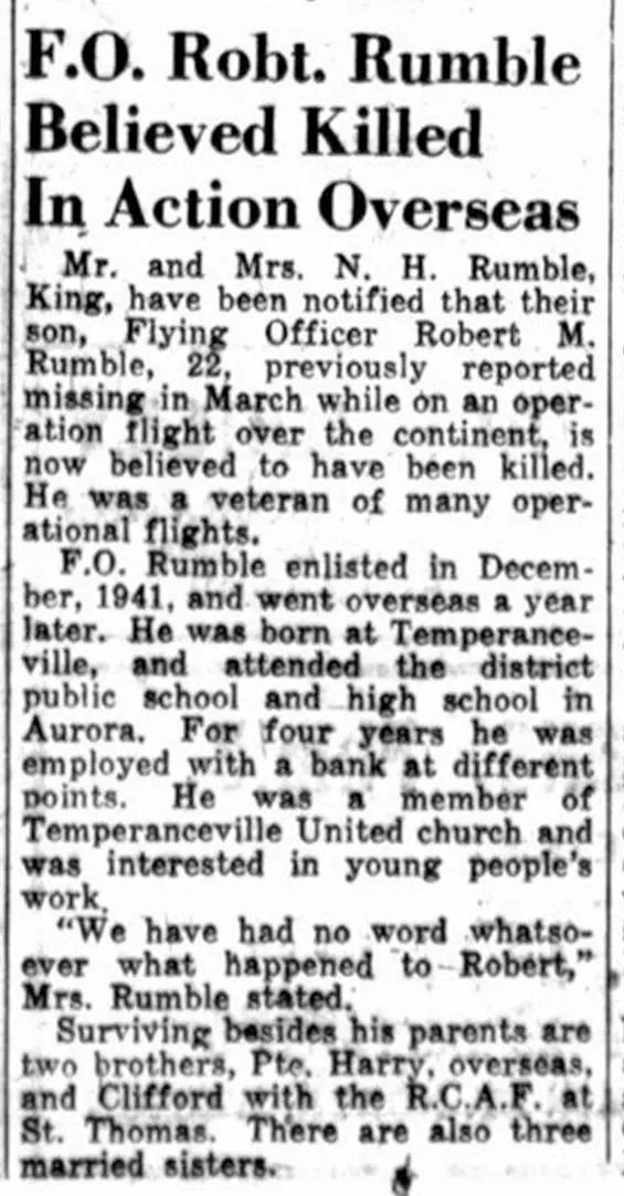 Son of Norman H. and Sarah A. Rumble, of Oak Ridges, Ontario.