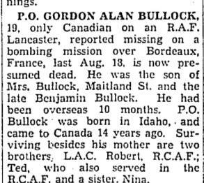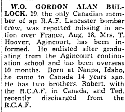 Son of B. H. Bullock and of Audrey M. Bullock, of Toronto, Ontario, Canada.