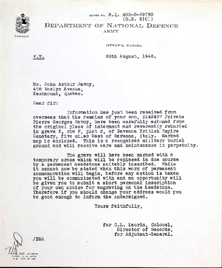 The site for the cemetery was selected by the Army in 1945 for burials from the surrounding battlefields. Ravenna was taken by the Canadian Corps at the beginning of December 1944, and the burials in the cemetery there reflect the fighting for the Senio line and the period of relative quiet during the first three months of 1945. Many of the men buried there were Canadians; one of the last tasks of the Canadian Corps before being moved to north-west Europe was the clearing of the area between Ravenna and the Comacchio lagoon. Others are Indians from the 10th Indian Division, and New Zealanders. The Cemetery also contains the graves of 30, 1914-18 War casualties concentrated in March 1974 from Gradisca Communal Cemetery , Italy and 3 other burials concentrated from other minor cemeteries in Italy. There are now over 30 graves of the First World War and 956 graves plus one Special Memorial of the Second World War.