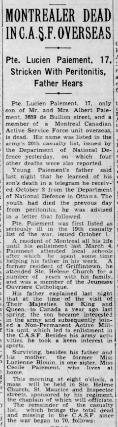 Son of Albert and Lucienne Paiement, of Montreal, Quebec.