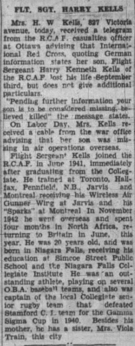 Son of Daisy E. Kells, of Niagara Falls, Ontario, Canada.