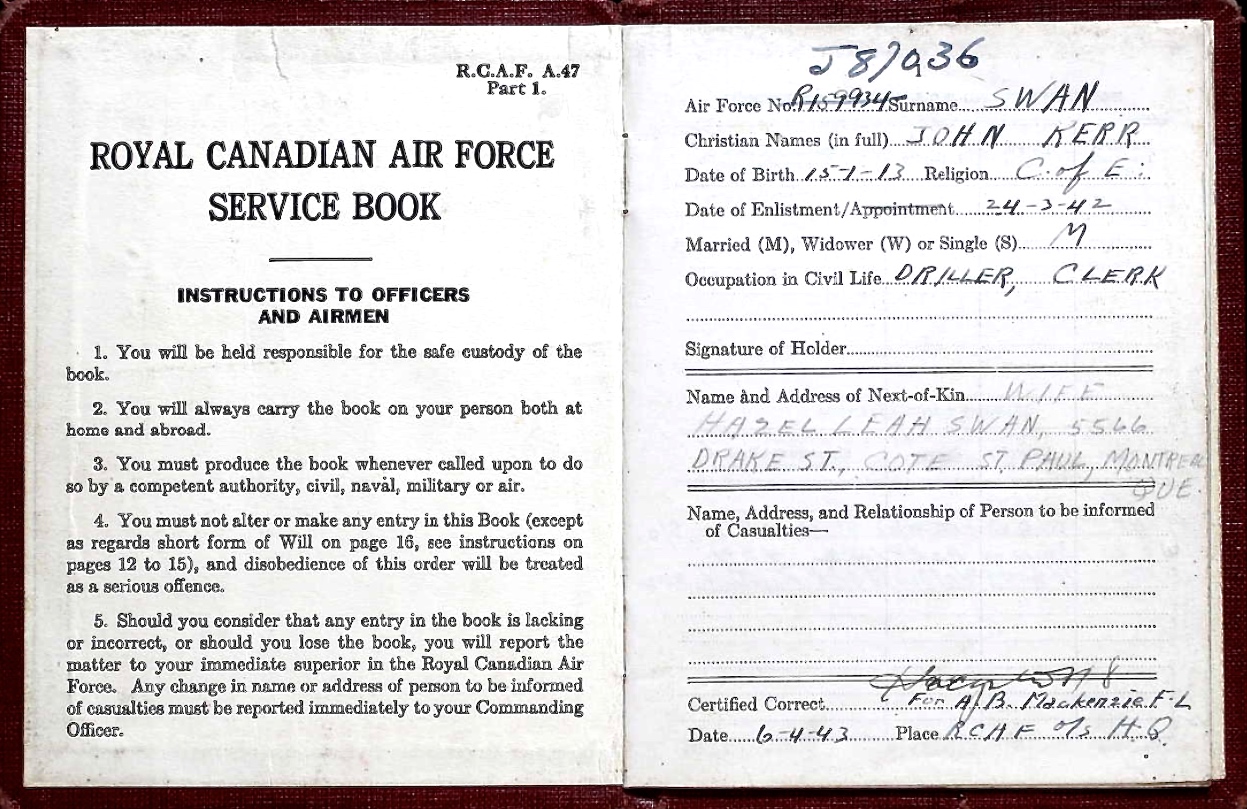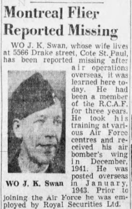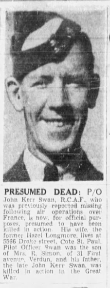 Son of John Kerr Swan and Joan Swan; husband of Hazel L. Swan, of Montreal, Province of Quebec.