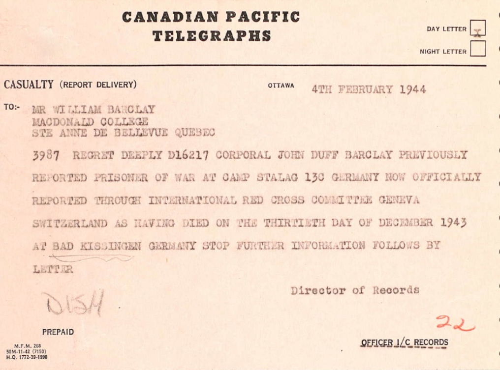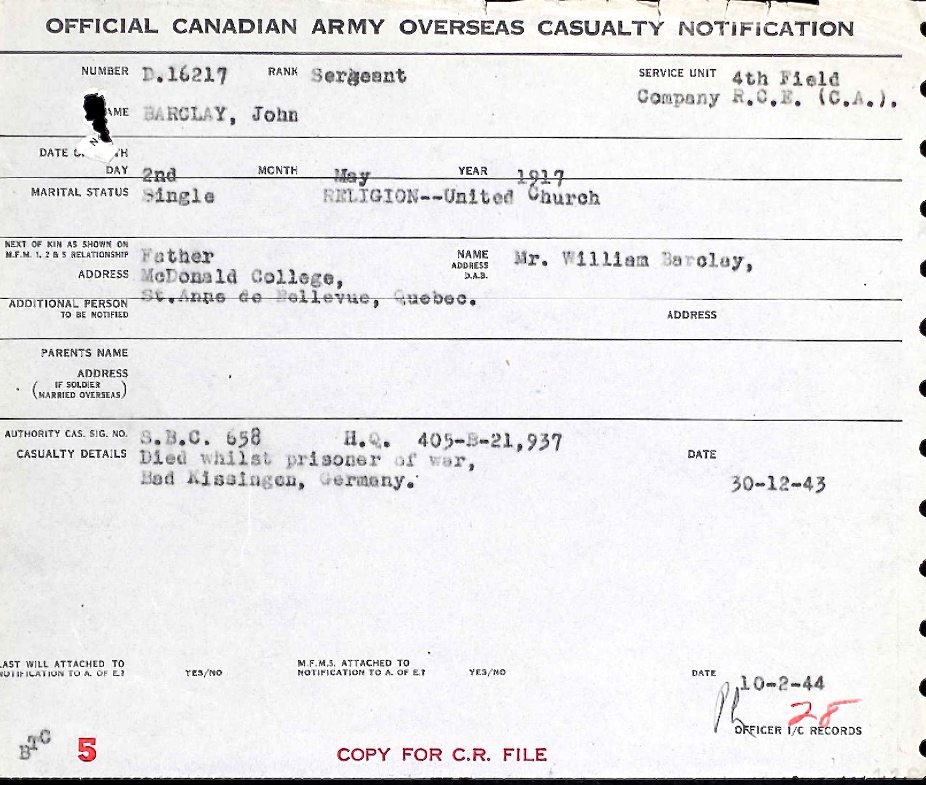 Digital gallery of Sergeant John Duff Barclay