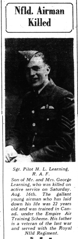 Son of George and Sarah Learning, of Freshwater Valley, St. John's, Newfoundland.