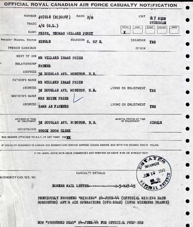 Digital gallery of Pilot Officer Thomas Willard Percy Price