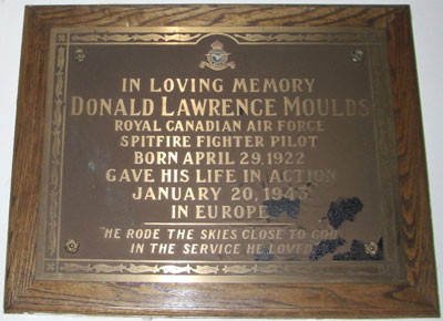 Commemorated on the Donald Lawrence Moulds Plaque.