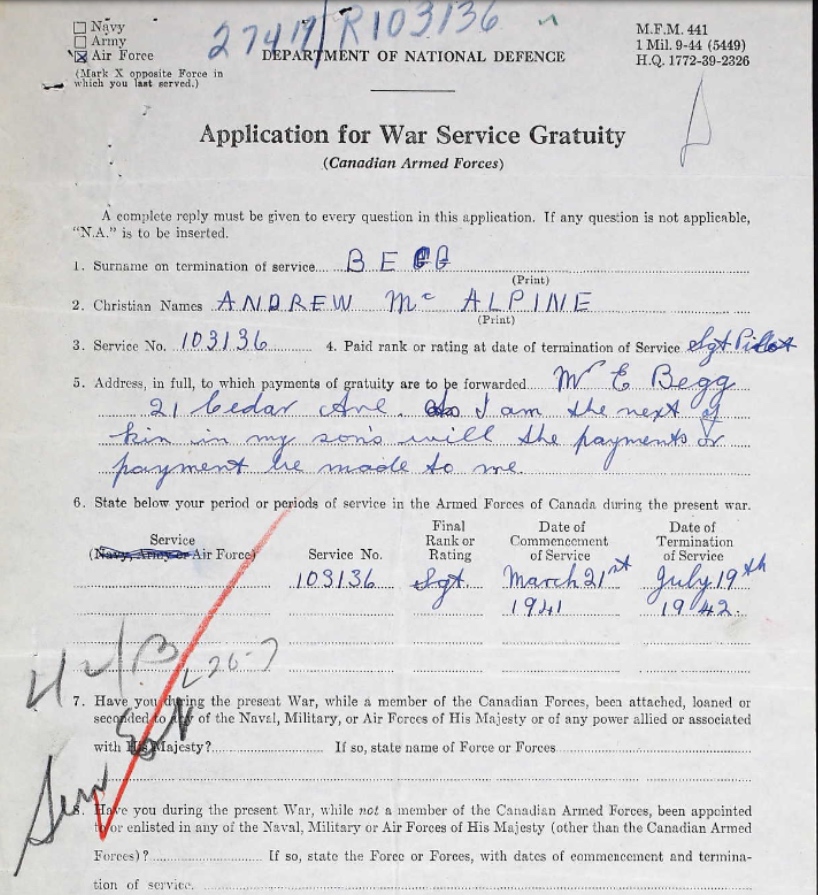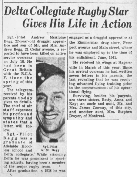 Son of Andrew and Elizabeth B. Begg, of Hamilton, Ontario.