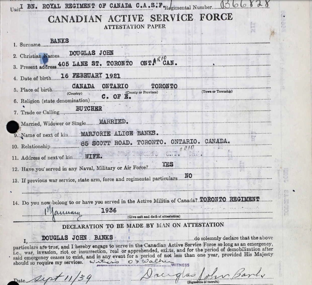 Son of Frederick H. and Elizabeth J. Banks, of Toronto, Ontario. Husband of Marjorie A. Banks, of Toronto.