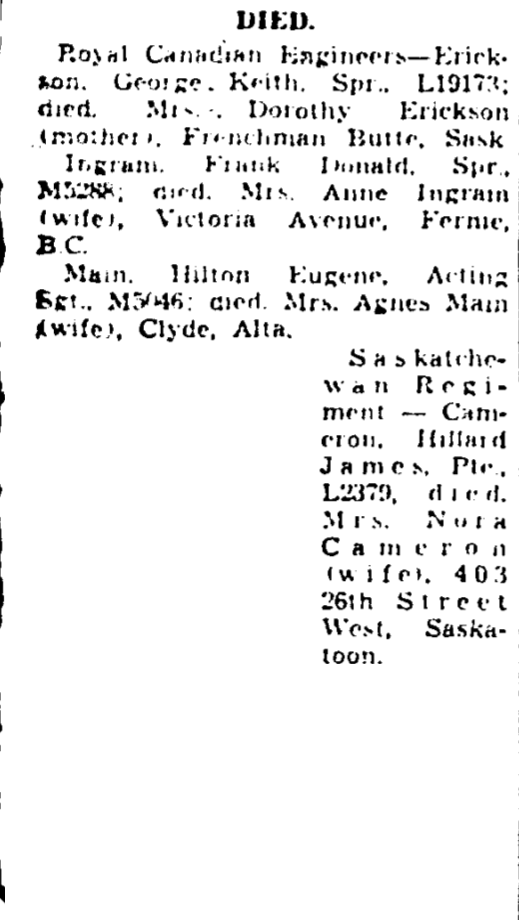 Unit/Regiment: Saskatoon Light Infantry (M.G.), R.C.I.C.