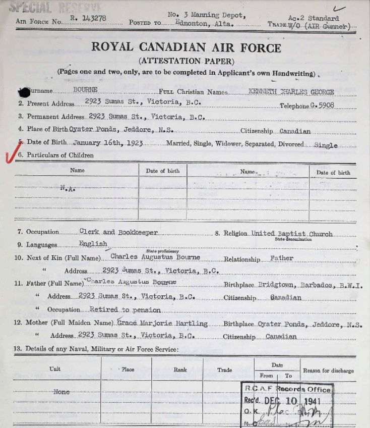 Son of Charles Augustus and Grace Marjorie Bourne, of Toronto, Ontario.