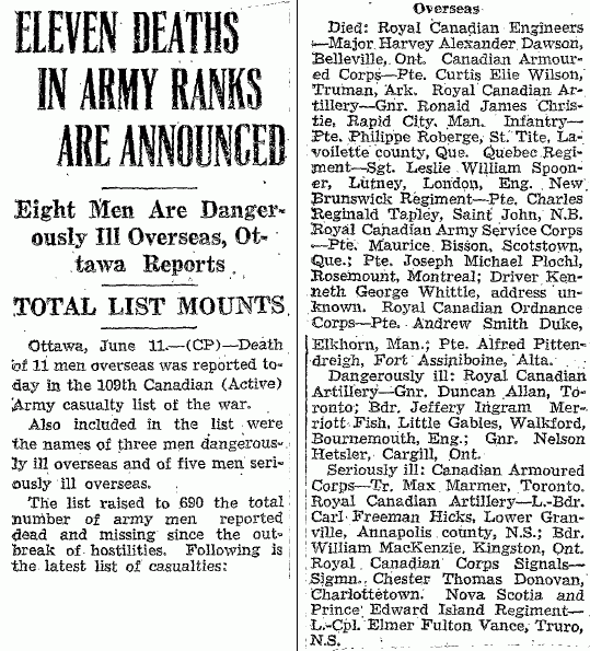 Page 64 of the Second World War Book of Remembrance.