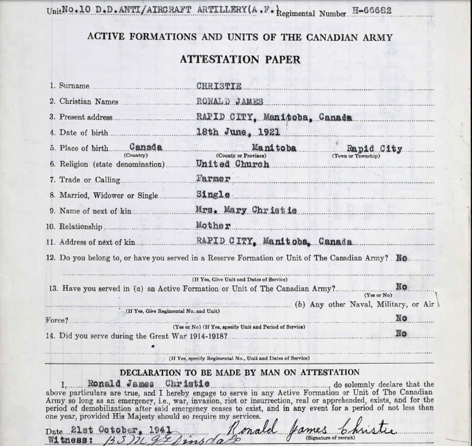 Son of Ben and Mary Christie, of Rapid City, Manitoba.