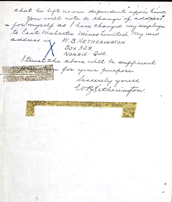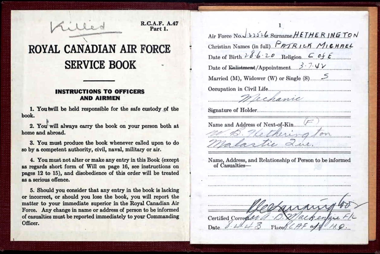 Son of William Bell Hetherington and Gladys Emily Hetherington, of Norrie, Province of Quebec, Canada.