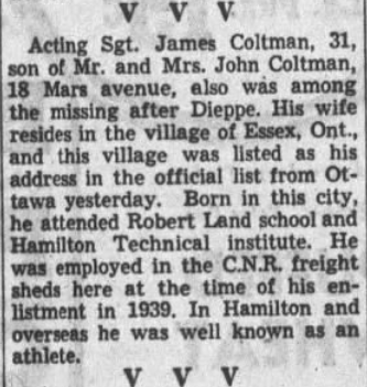 Son of John and Margaret Stevenson Coltman; husband of Jessie May Coltman, of Belle River, Ontario.