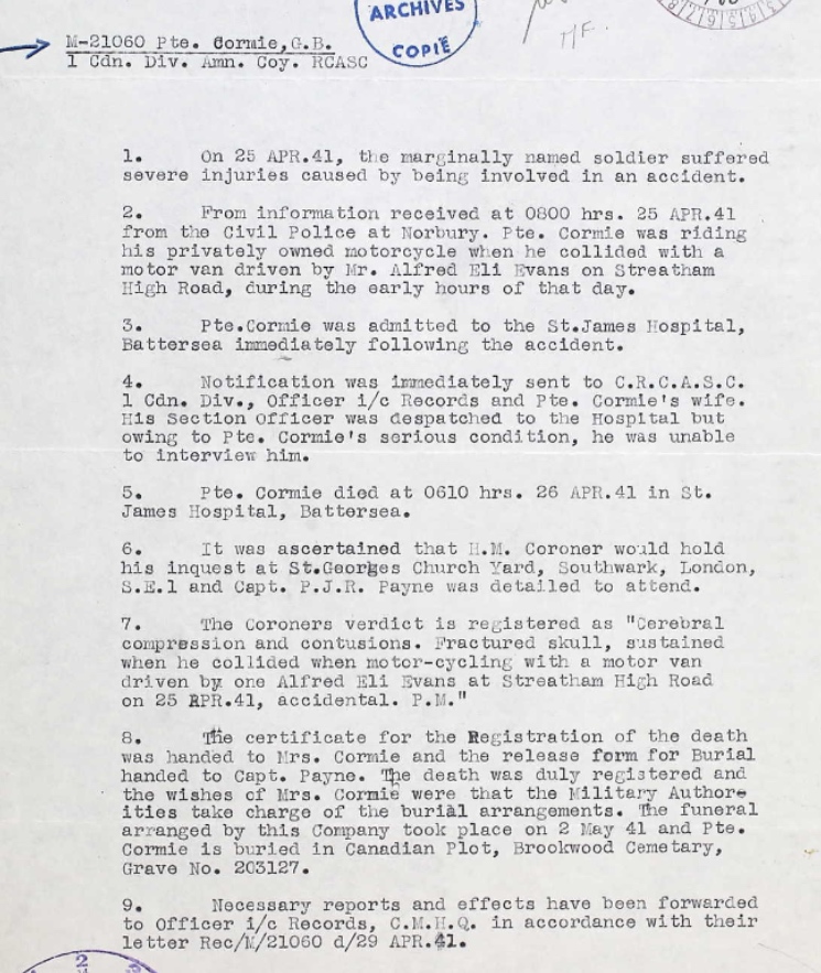 In 1917, an area of land in Brookwood Cemetery (originally The London Necropolis) was set aside for the burial of men and women of the forces of the Commonwealth and Americans, who had died, many of battle wounds, in the London district. This site was further extended to accommodate the Commonwealth casualties of the Second World War, and American, Belgian, Czech, Dutch, French and Polish plots containing the graves of Allied casualties. There are also German and Italian plots where prisoners of war lie buried.