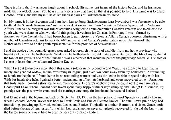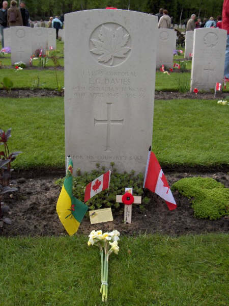 Brother of Private Leslie John Davies, who died on January 15, 1941, while serving with the 16/22 Saskatchewan Horse, R.C.A.C. Brother-in-law of Pilot Officer Hugh Alexander Adams, who died on July 29, 1944, while serving with the Royal Canadian Air Force.