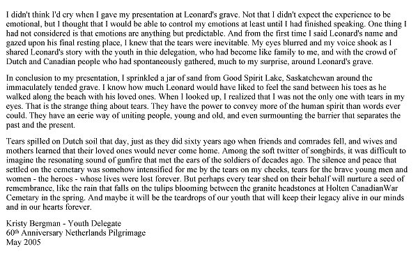 Historical Information: The Netherlands fell to the Germans in May 1940 and was not re-entered by Allied forces until September 1944. The great majority of those buried in Holten Canadian War Cemetery died during the last stages of the war in Holland, during the advance of the Canadian 2nd Corps into northern Germany, and across the Ems in April and the first days of May 1945. After the end of hostilities the remains of over 1,300 Canadian soldiers were brought together into this cemetery.