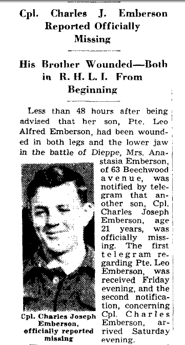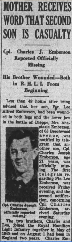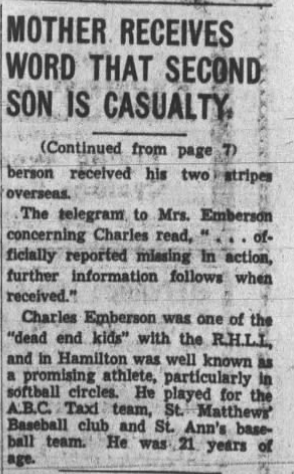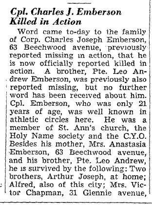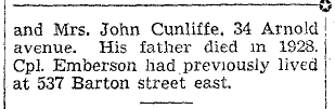 Son of Alfred and Anastatia Emberson, of Hamilton, Ontario.