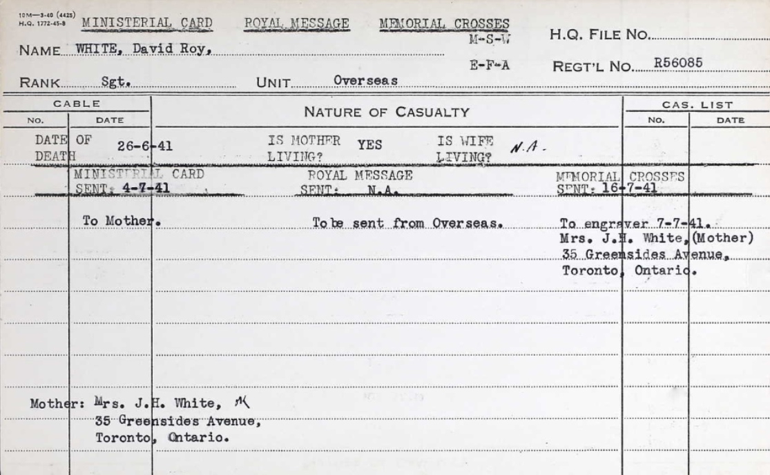 Son of Joseph Herbert and Mary White, of Toronto, Ontario. Canada.