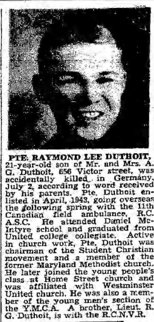 Son of Albert Gill Duthoit and Verna Maude Duthoit, of Winnipeg, Manitoba.