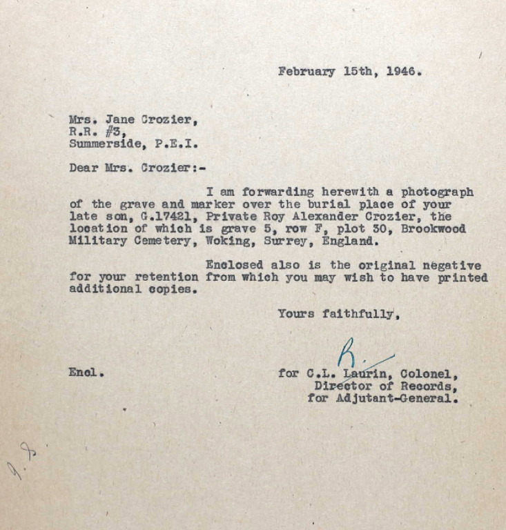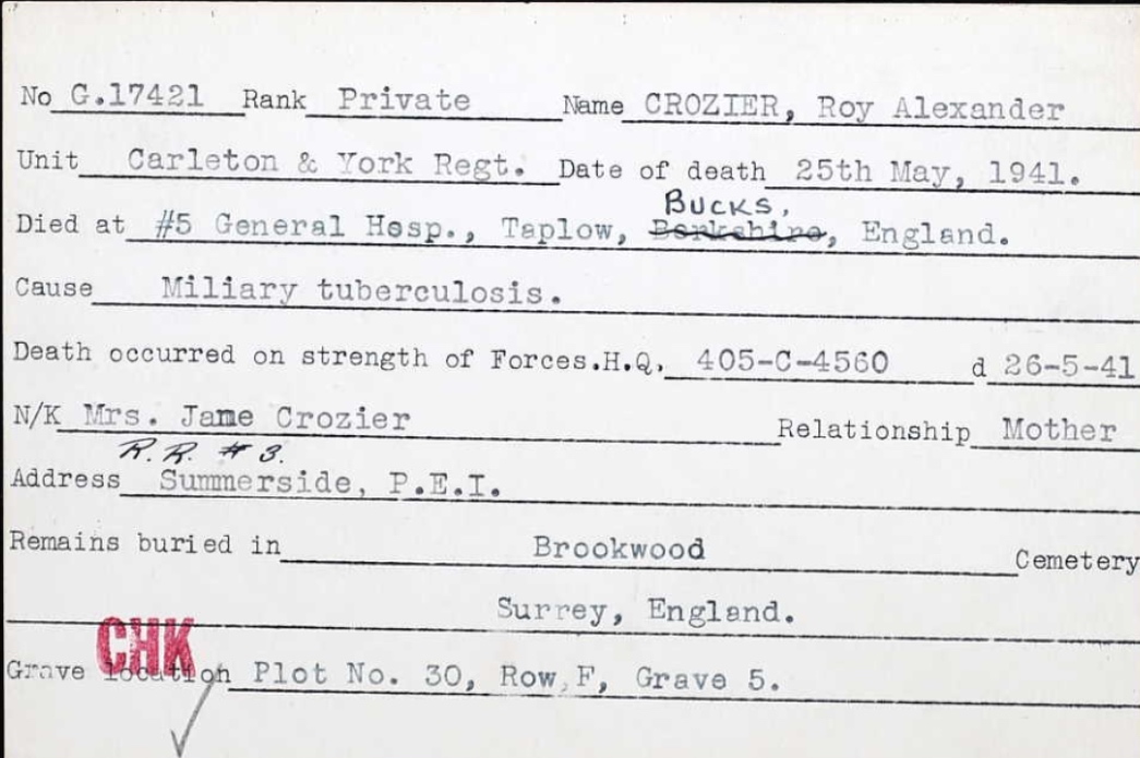 Son of Henry Lewis Crozier and Mary Jane Crozier, of Summerside, Prince Edward Island.