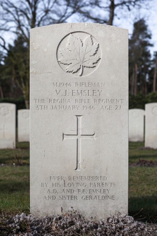 Historical Information: The Netherlands fell to the Germans in May 1940 and was not re-entered by Allied forces until September 1944. The great majority of those buried in Holten Canadian War Cemetery died during the last stages of the war in Holland, during the advance of the Canadian 2nd Corps into northern Germany, and across the Ems in April and the first days of May 1945. After the end of hostilities the remains of over 1,300 Canadian soldiers were brought together into this cemetery.