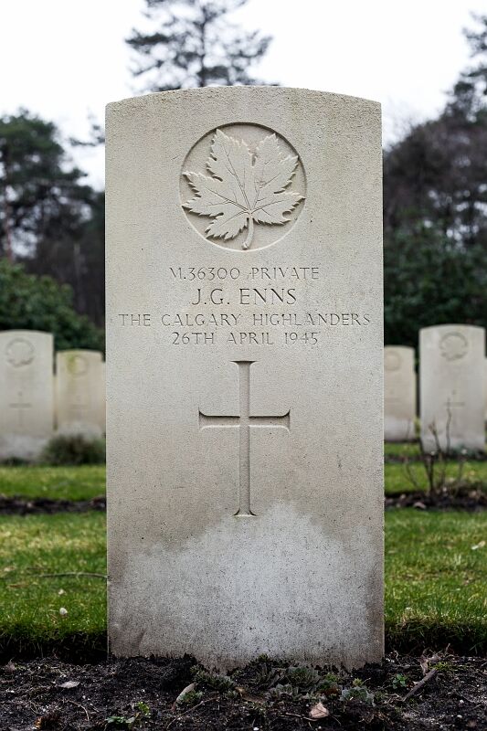 Historical Information: The Netherlands fell to the Germans in May 1940 and was not re-entered by Allied forces until September 1944. The great majority of those buried in Holten Canadian War Cemetery died during the last stages of the war in Holland, during the advance of the Canadian 2nd Corps into northern Germany, and across the Ems in April and the first days of May 1945. After the end of hostilities the remains of over 1,300 Canadian soldiers were brought together into this cemetery.