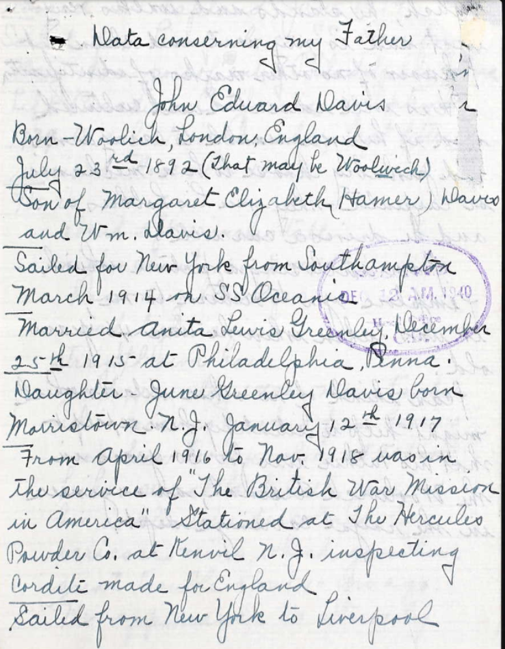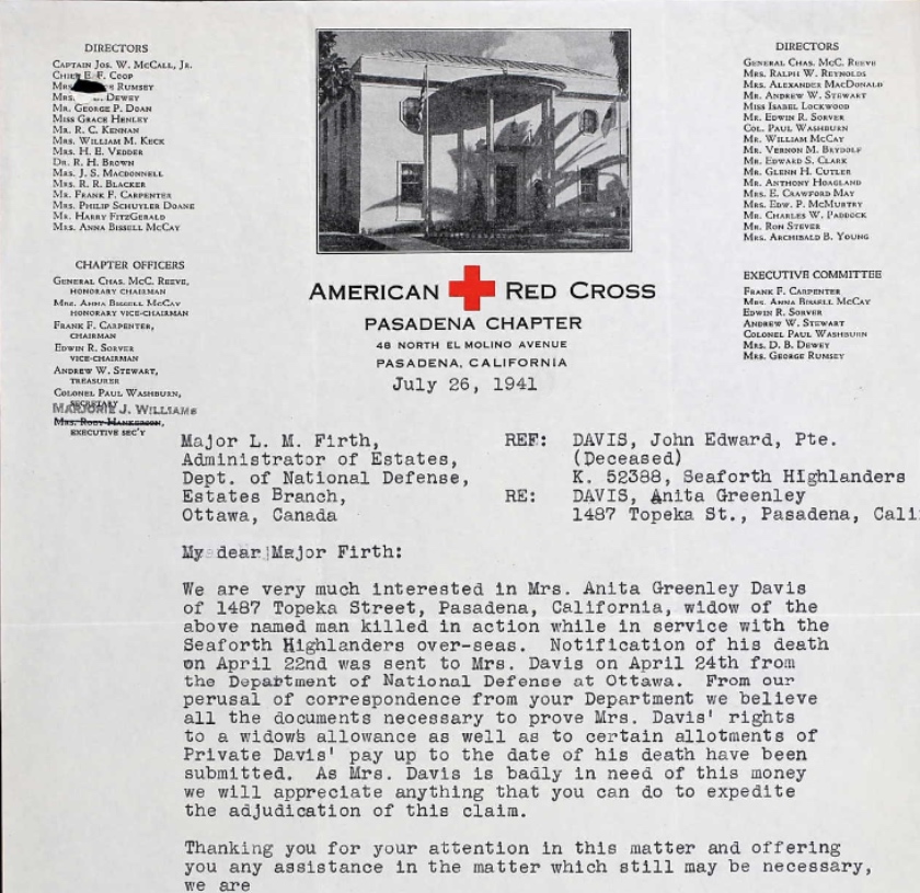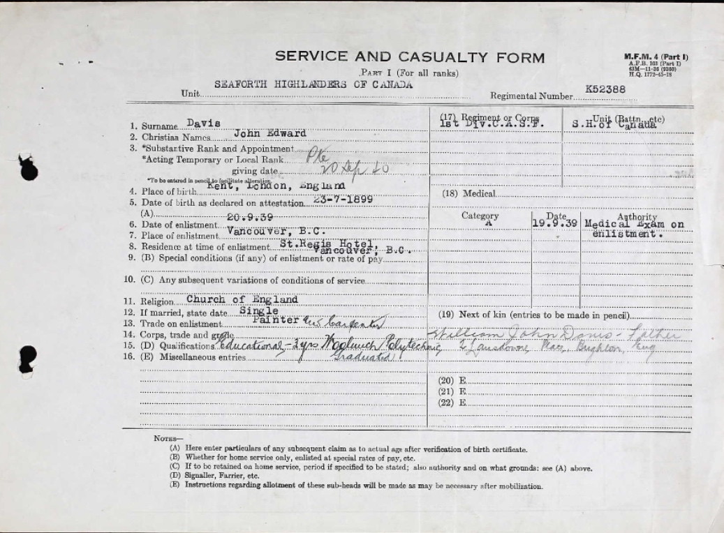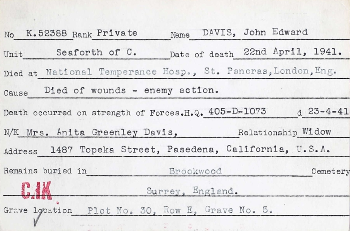 Son of William John and Margaret Elizabeth Davis; husband of Anita Greenley Davies, of Pasadena, California, U.S.A.