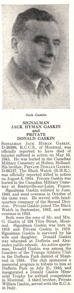 Brother of Private Donald Gaskin, who died while serving with the Black Watch (Royal Highland Regiment) of Canada.