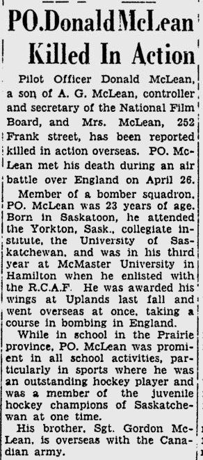 Son of Allan Grant McLean and Donalda Ruth Weir McLean, of Ottawa, Ontario.