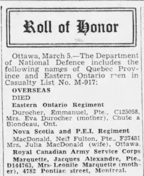 Unit/Regiment: Stormont, Dundas and Glengarry Highlanders, R.C.I.C.