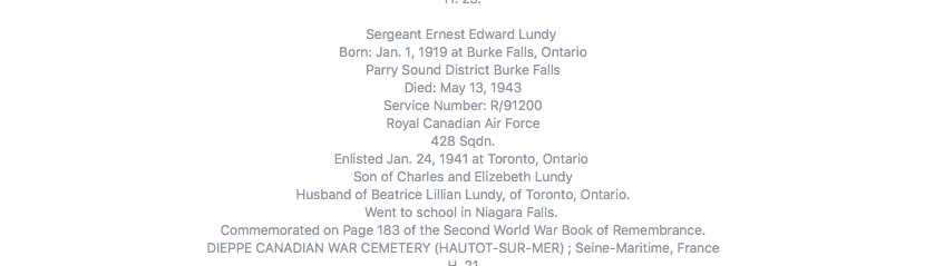 Son of Charles and Elizebeth Lundy; husband of Beatrice Lillian Lundy, of Toronto, Ontario.