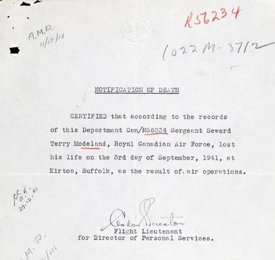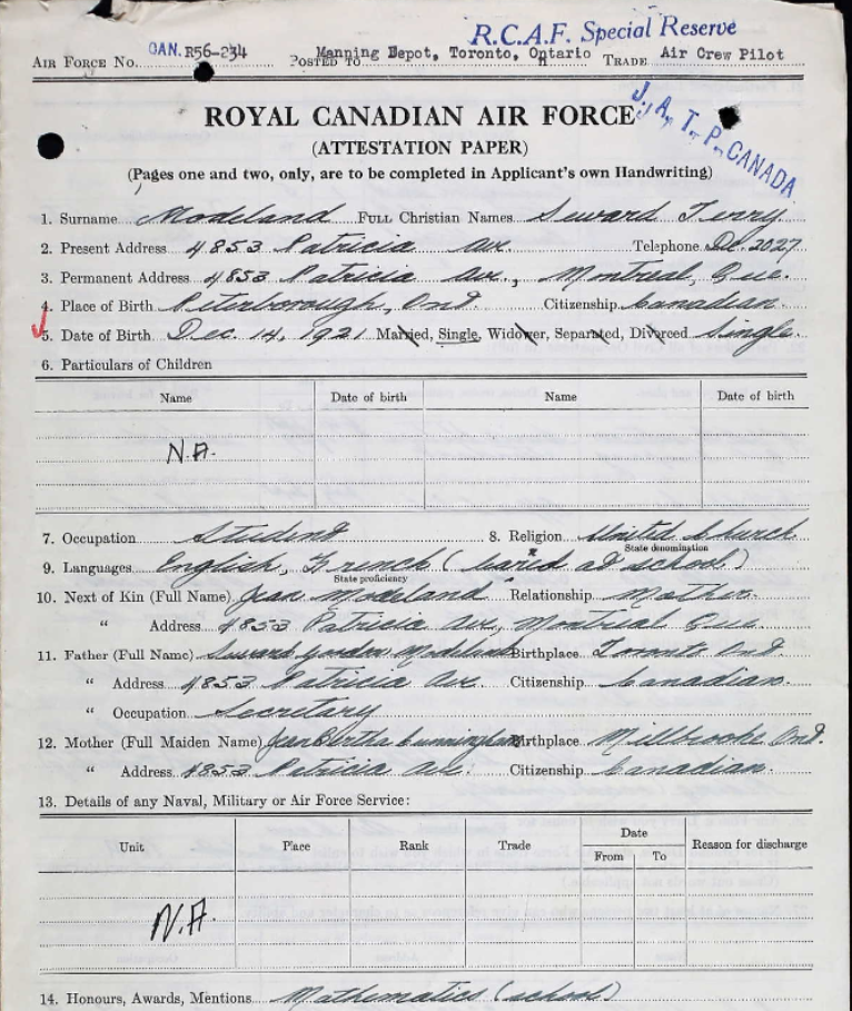 Son of Seward Gordon and Bertha Jane Modeland, of Montreal, Province of Quebec, Canada.