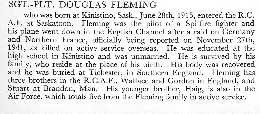 Son of James and Jeanie Fleming, of Kinistino, Saskatchewan.