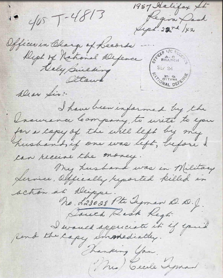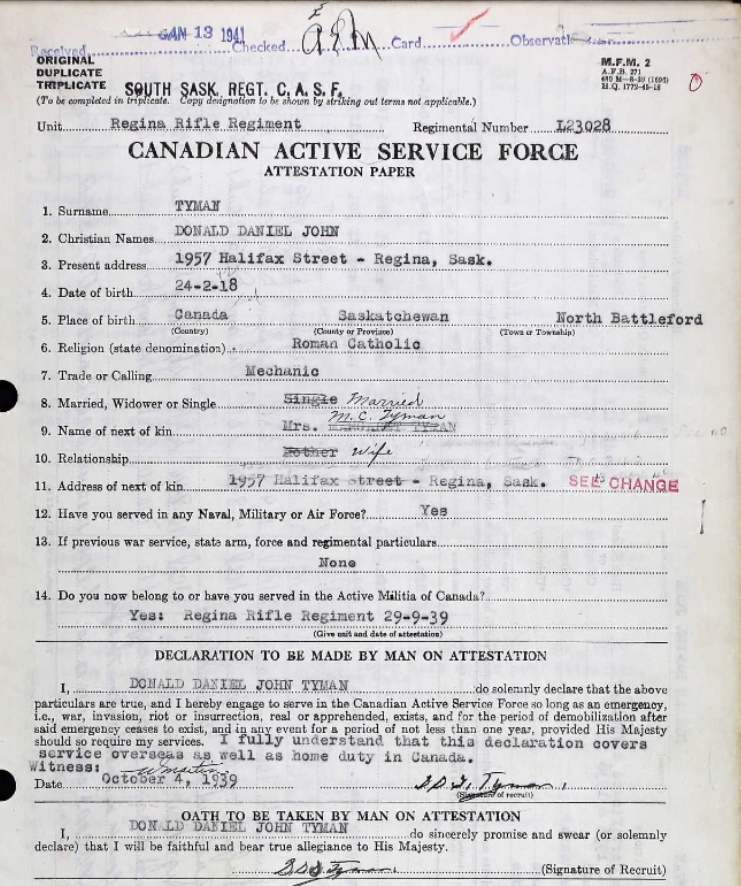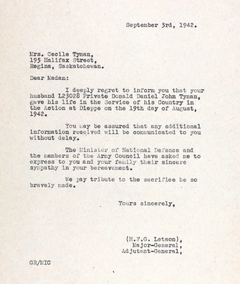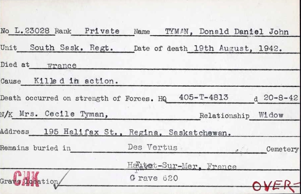 Son of Margaret Tyman; husband of Cecile M. M. Tyman, of Regina, Saskatchewan.