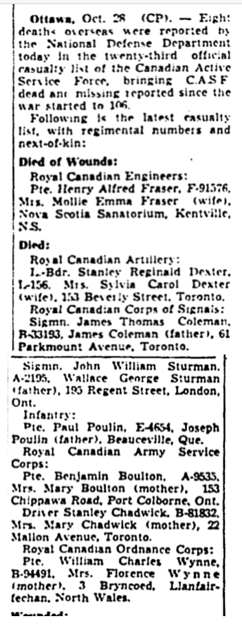 Son of Wallace George and Rosa Sturman, of London, Ontario. Canada.