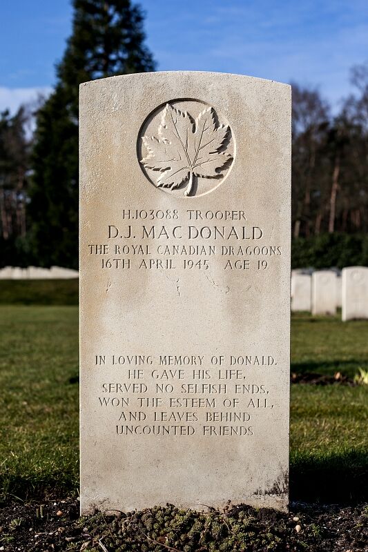 Historical Information: The Netherlands fell to the Germans in May 1940 and was not re-entered by Allied forces until September 1944. The great majority of those buried in Holten Canadian War Cemetery died during the last stages of the war in Holland, during the advance of the Canadian 2nd Corps into northern Germany, and across the Ems in April and the first days of May 1945. After the end of hostilities the remains of over 1,300 Canadian soldiers were brought together into this cemetery.