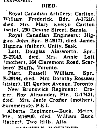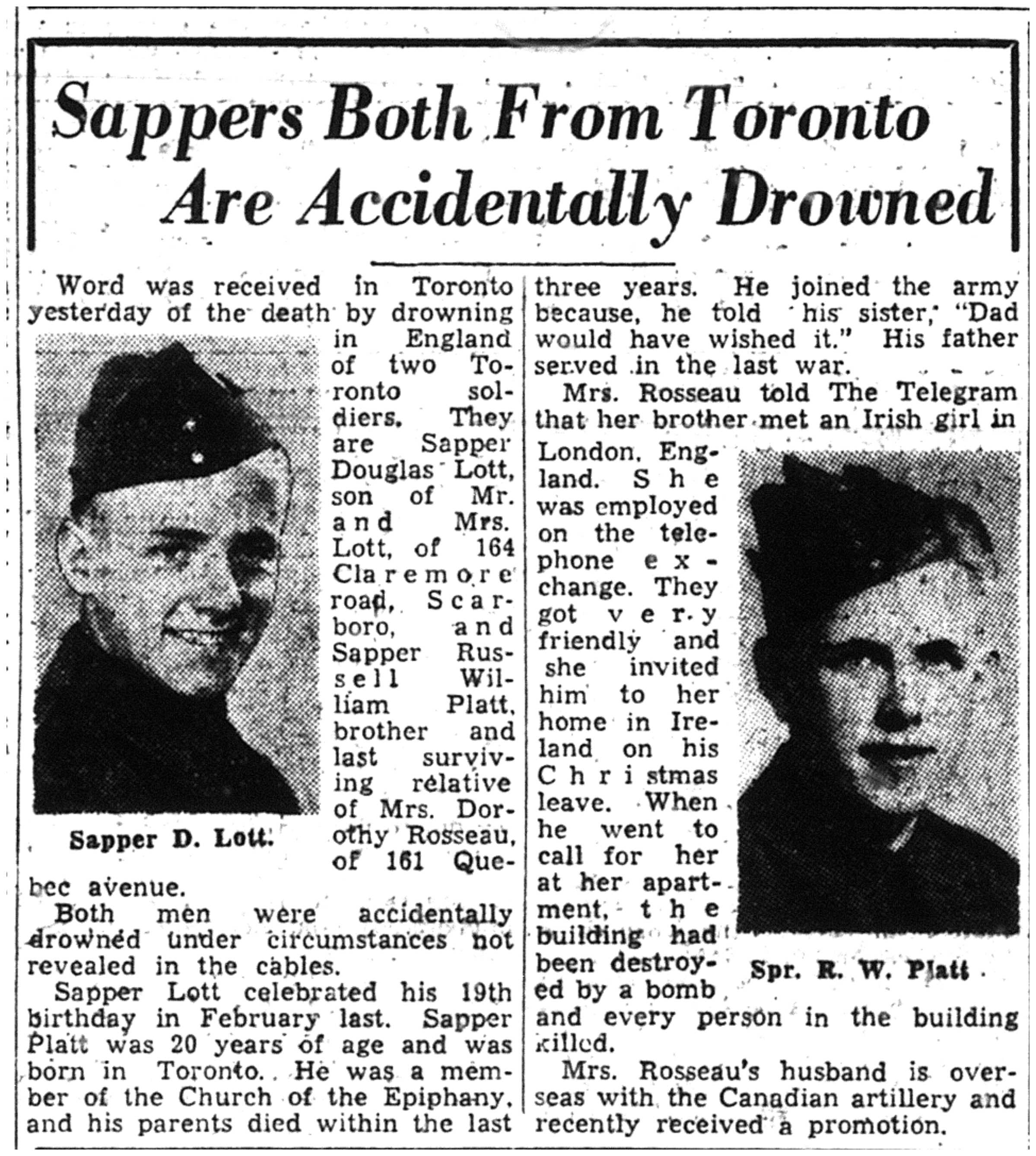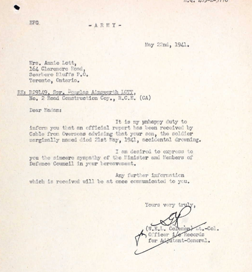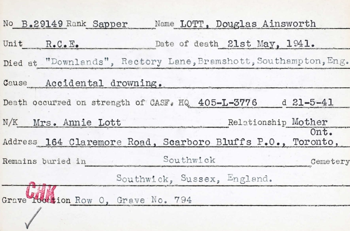 Son of Percy Douglas and Annie Lott, of Scarboro' Bluffs, Ontario, Canada.