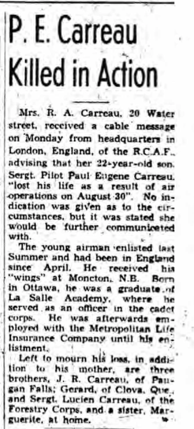 Son of Eugene Carreau and Rose-Anna Sabourin, of Ottawa, Ontario.