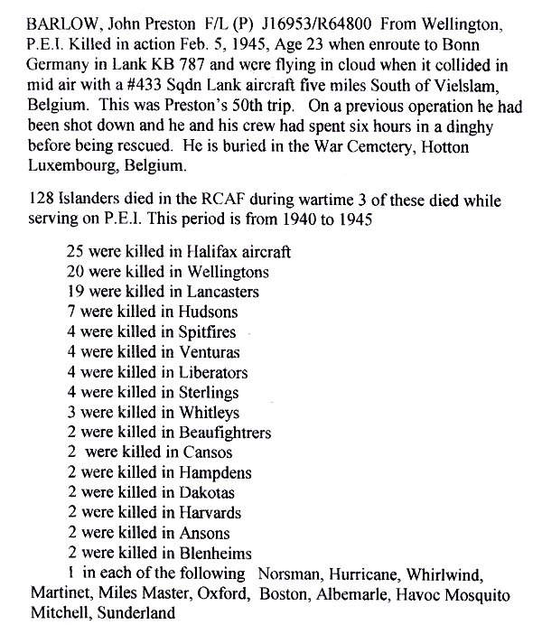 Son of Howard and Greta Barlow of Wellington Station, Prince Edward Island.