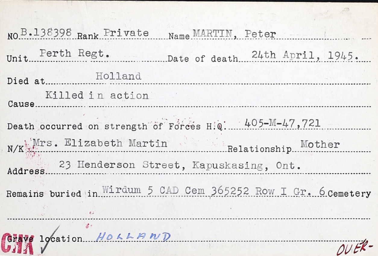Historical Information: The Netherlands fell to the Germans in May 1940 and was not re-entered by Allied forces until September 1944. The great majority of those buried in Holten Canadian War Cemetery died during the last stages of the war in Holland, during the advance of the Canadian 2nd Corps into northern Germany, and across the Ems in April and the first days of May 1945. After the end of hostilities the remains of over 1,300 Canadian soldiers were brought together into this cemetery.