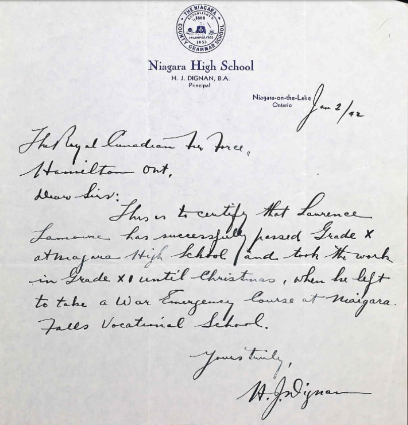 Son of F. C. and Alice E. Lamoure, of Niagara-on-the-Lake, Ontario.