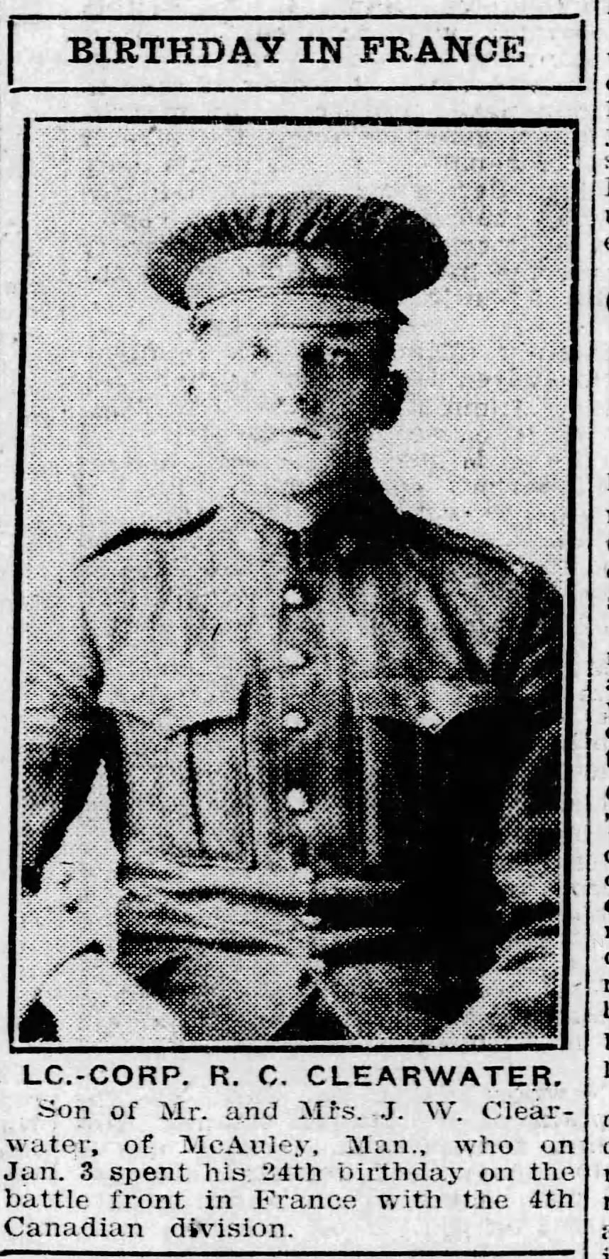 Son of John W. and Catherine J. Clearwater, of Welwyn, Sask.
