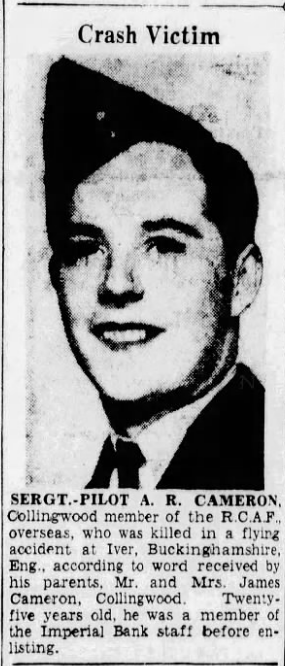Son of James and Agnes Cameron, of Collingwood, Ontario, Canada.