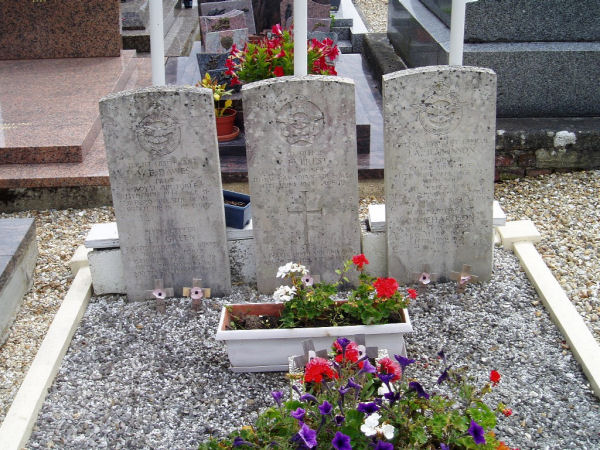 Fontaine-la-Louvet is a village lying about 53 kilometres west-north-west of Evreux and 16 kilometres east of Lisieux, just over 1.5 kilometres north of the main Evreux-Lisieux road. Near the north-western corner of the church is the Collective Grave of 5 airmen.