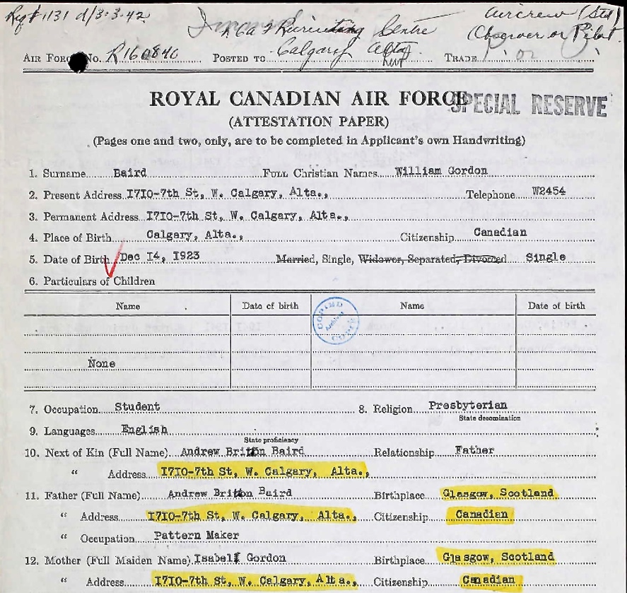 Son of Andrew and Isabel Baird, of Calgary, Alberta, Canada.