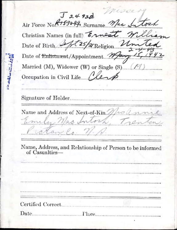 Flying Officer Ernest William MacIntosh