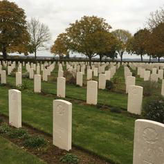 This cemetery lies on the west side of the main road from Caen to Falaise (route N158) and just north of the village of Cintheaux. Bretteville-sur-Laize is a village and commune in the department of the Calvados, some 16 kilometres south of Caen. The village of Bretteville lies 3 kilometres south-west of the Cemetery. Buried here are those who died during the later stages of the battle of Normandy, the capture of Caen and the thrust southwards (led initially by the 4th Canadian and 1st Polish Armoured Divisions), to close the Falaise Gap, and thus seal off the German divisions fighting desperately to escape being trapped west of the Seine. Almost every unit of Canadian 2nd Corps is represented in the Cemetery. There are about 3,000 allied forces casualties of the Second World War commemorated in this site.