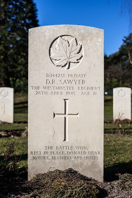 Historical Information: The Netherlands fell to the Germans in May 1940 and was not re-entered by Allied forces until September 1944. The great majority of those buried in Holten Canadian War Cemetery died during the last stages of the war in Holland, during the advance of the Canadian 2nd Corps into northern Germany, and across the Ems in April and the first days of May 1945. After the end of hostilities the remains of over 1,300 Canadian soldiers were brought together into this cemetery.
